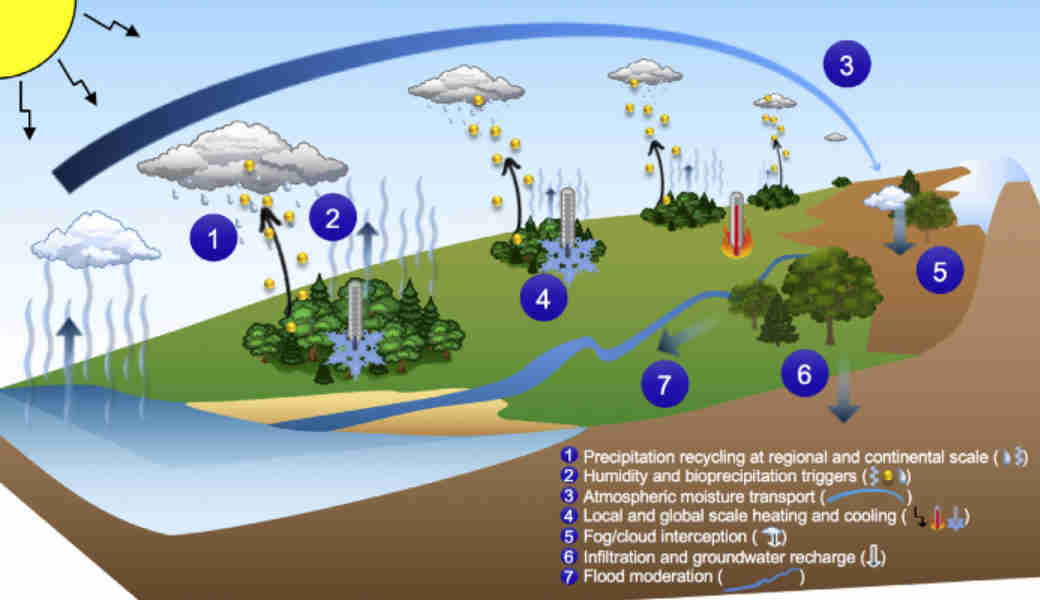 | De biotische pomp is een theoretisch concept dat laat zien hoe bossen winden creëren en controleren die vanuit de oceaan opstijgen en zo water naar de bossen verder landinwaarts brengen |