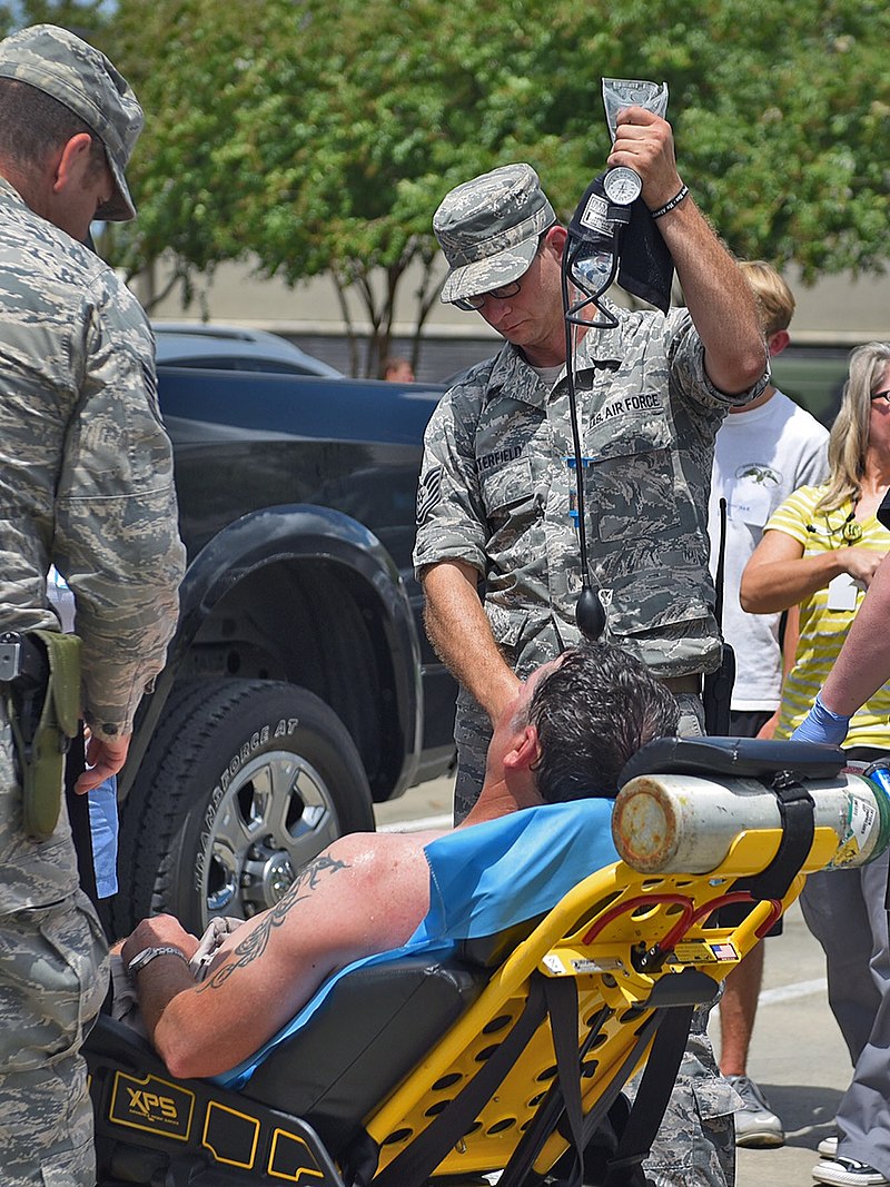 | Behandeling tegen hitteberoerte in Baton Rouge tijdens de overstromingen in Louisiana in 2016 |