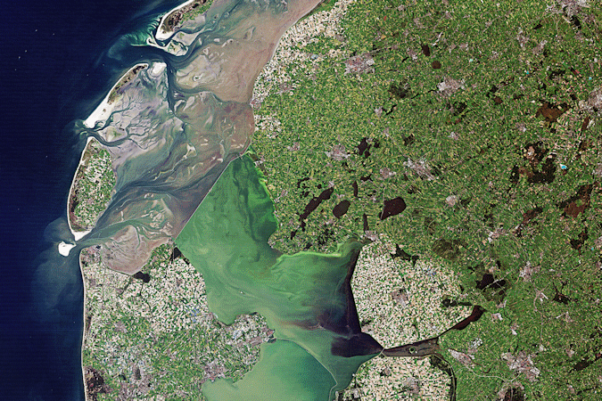 | Landsat 5 satellietbeeld op 6 september 2010 van Noord-Nederland en het Waddengebied [USGS] |