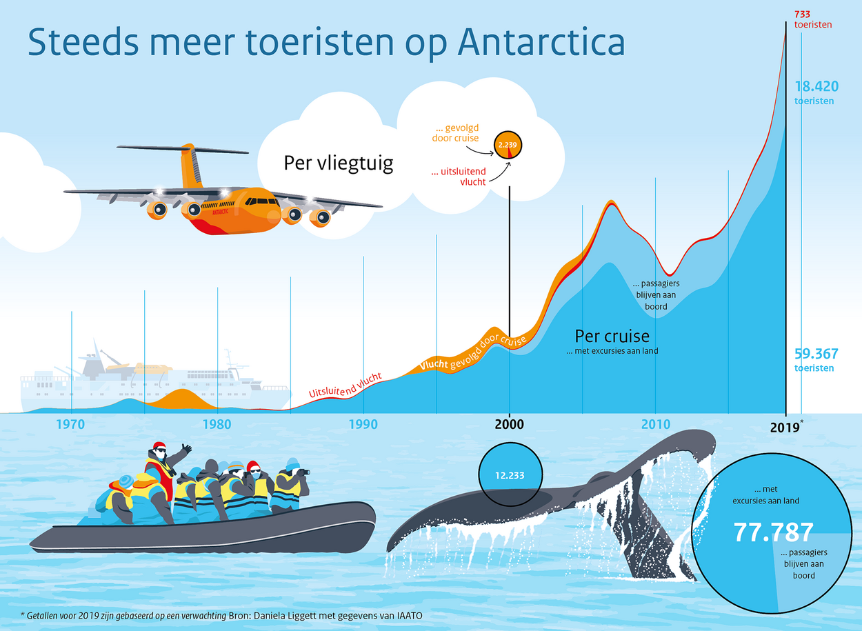 van 2019-2020 reisden ongeveer 78.000 toeristen af naar het Zuidpoolgebied, aan boord van een cruiseschip of per vliegtuig. Vooral de laatste jaren neemt het toerisme flink toe, na een tijdelijke daling tijdens de economische crisis tussen