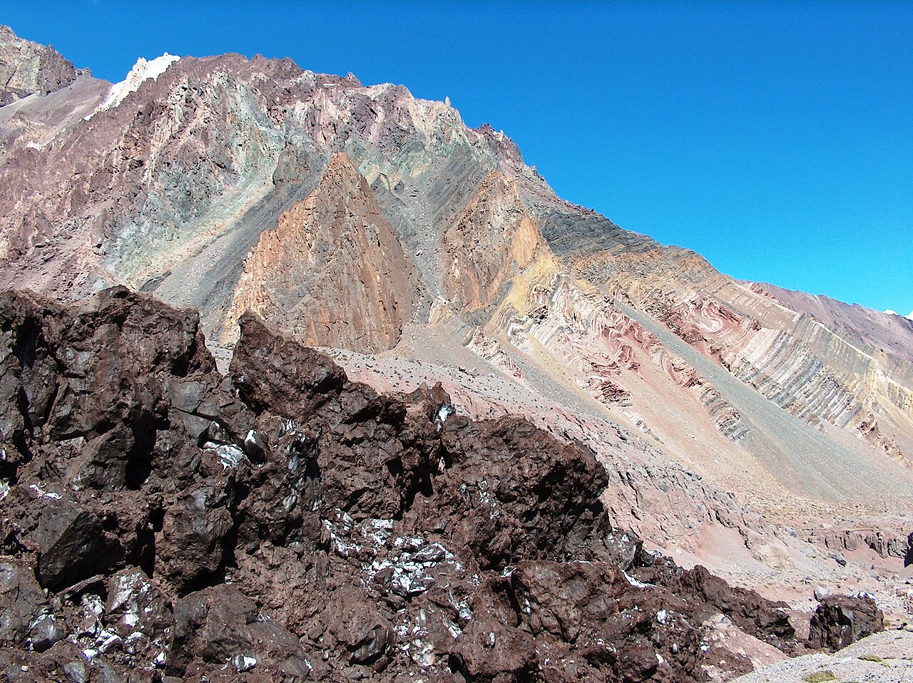 Argentinië hoog (4.500 tot 6.900 m en koud, maar het relatieve gebrek aan neerslag voorkomt dat sneeuw zich ophoopt in gletsjers. Dit komt doordat deze pieken zich in de buurt van of in de hyperaride Atacama-woestijn bevinden. |