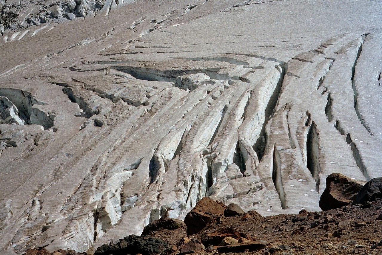 | Scheer- of visgraatspleten op Emmons Glacier (Mount Rainier) |