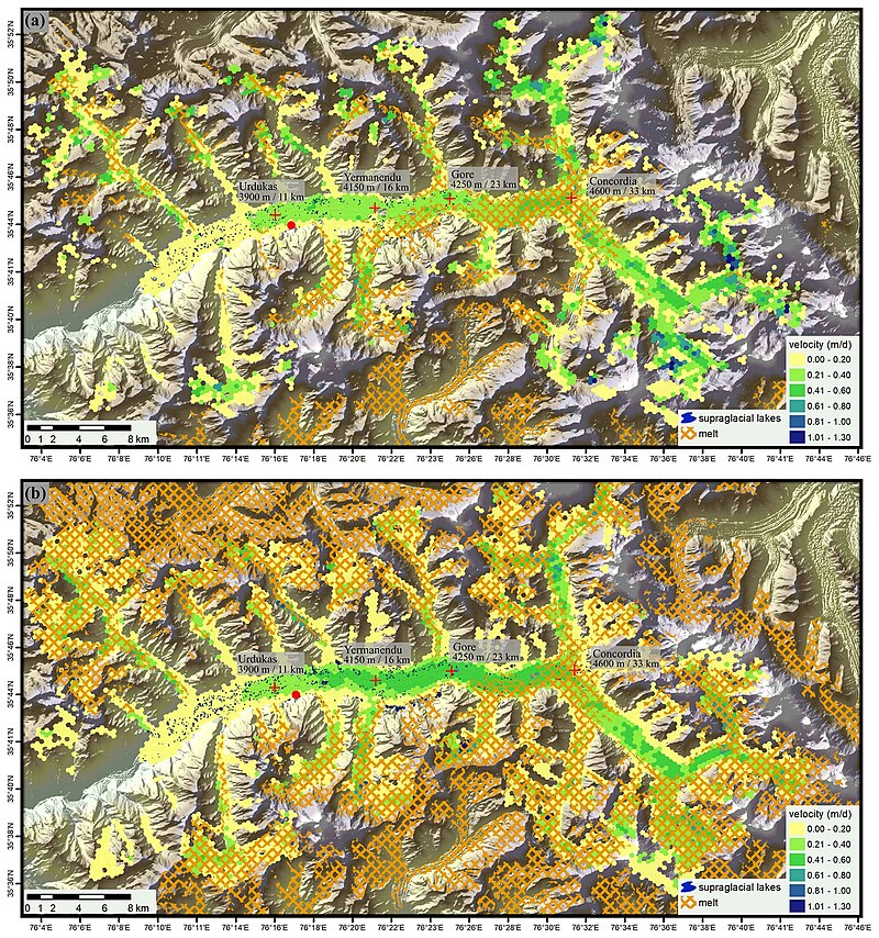 | - Snelheid van gletsjerbeweging |