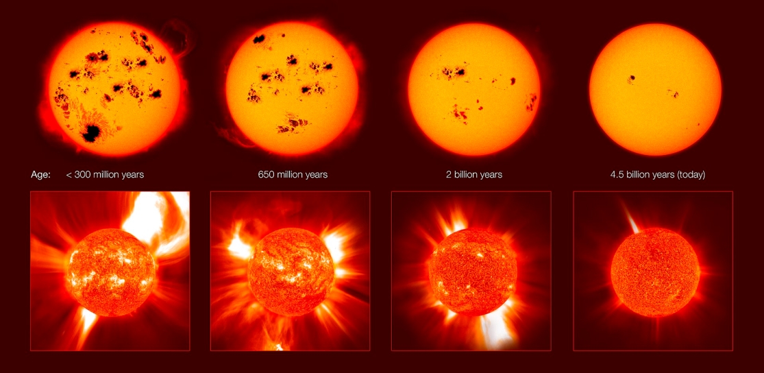 Daarbij zond ze echter honderden malen meer ultraviolette en röntgenstraling uit dan tegenwoordig. Na enige honderden miljoenen jaren was de