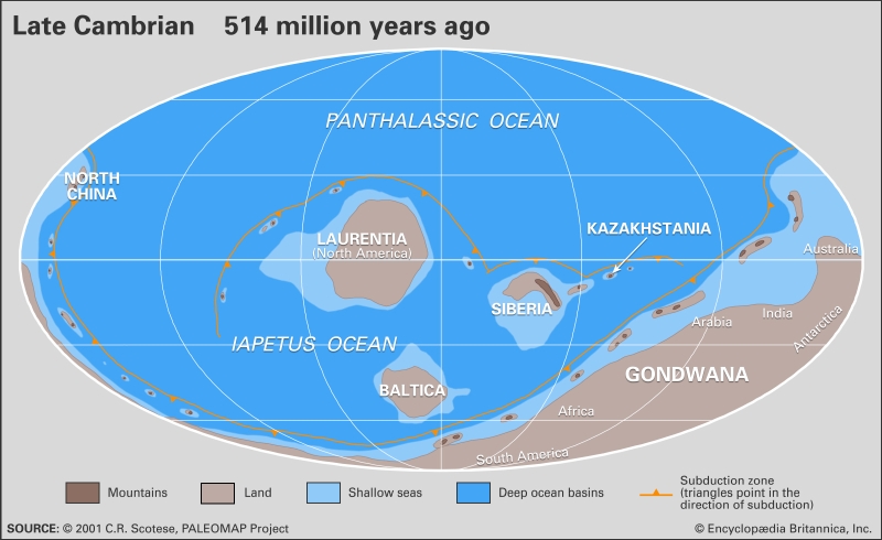 | De continentale massa was tussen 600 en 540 miljoen jaar geleden volgens sommige onderzoekers voornamelijk gelokaliseerd rond de huidige zuidpool op het supercontinent Pannotia.