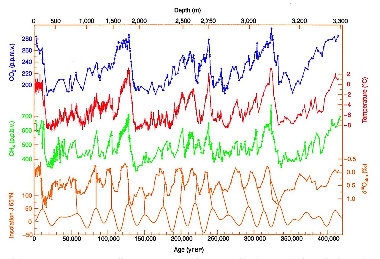 | Boven: Verandering van de isotoopconcentraties van zuurstof-18 in sediment. Deze wijst op een periodieke zeeniveau- en temperatuurdaling in de afgelopen 5,5 miljoen jaar.. |