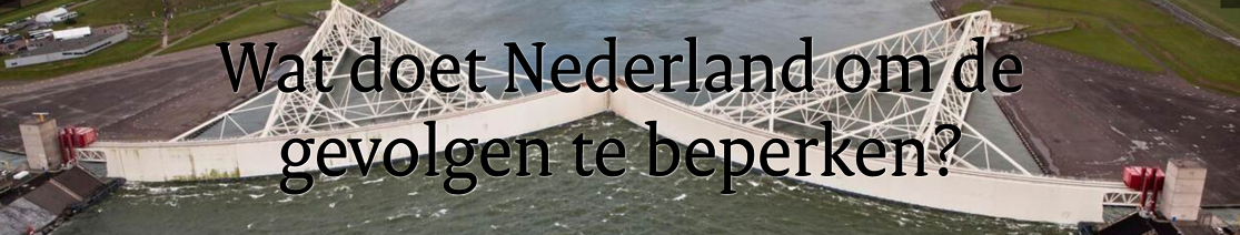 | In Nederland zijn de gevolgen tot nu toe gering. Het ontwerp van onze waterveiligheid en zoetwatervoorziening kent een hoog beschermingsniveau. De Nederlandse Delta is sinds de Deltawerken beter beschermd dan in het verleden. Tijdens de Sinterklaasstorm in 2013 bijvoorbeeld werden de hoogste waterstanden sinds 1953 zonder grote problemen gekeerd. Dat is ook belangrijk, want er bevinden zich steeds meer mensen achter de dijken. Sinds 2017 gelden nieuwe normen voor de bescherming tegen overstromingen |
