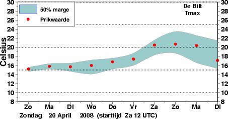 | Op meteorologische stations wordt de temperatuur van de lucht volgens internationale afspraak van de Wereld Meteorologische Organisatie (WMO) gemeten in graden Celsius op een hoogte van anderhalve meter boven een open grasvlakte. |