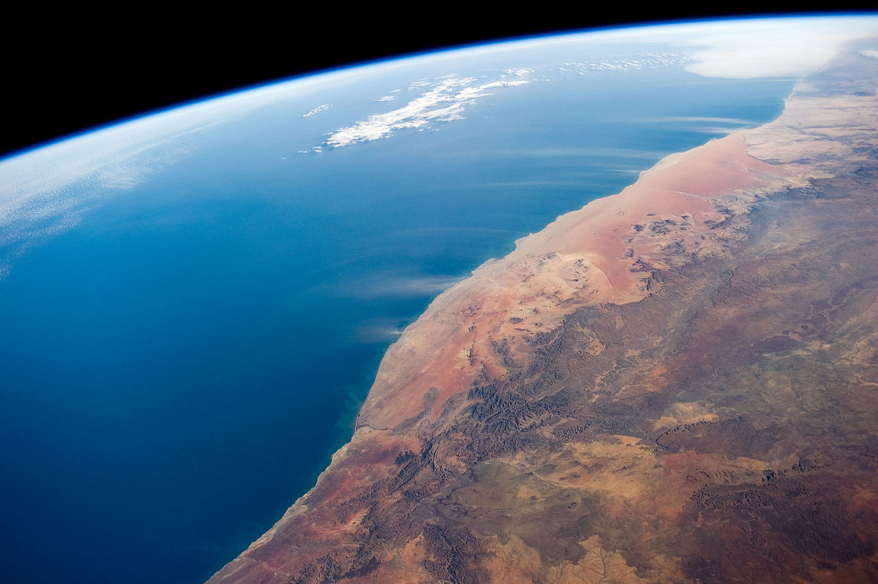 Bergwinden blazen woestijnzand van de Namibische kust. Deze sterke, hete