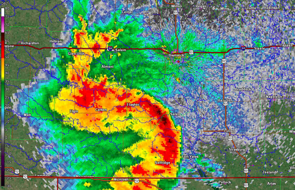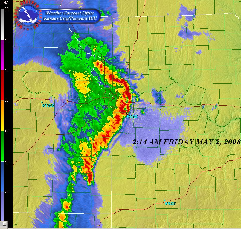 Echo's van zwak georganiseerde buienlijnen en supercellen. Onderzoekers stelden vast dat boeg-echo's het meest waarschijnlijk voorkomen in