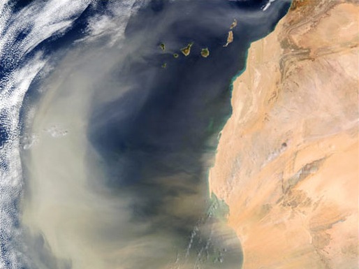 | Onderzoek uitgevoerd door de senior geoloog bij het U.S. Geological Survey Center for Coastal Geology, Gene Shinn, onthulde een correlatie tussen de achteruitgang van koraalriffen en toegenomen schadelijke pathogenen voor koraal die door stof van de Sahara naar het Caribisch gebied worden getransporteerd, gekoppeld aan een stijgende wereldwijde oceaantemperatuur. |