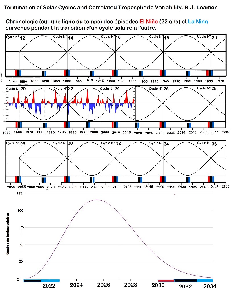 | Het El Nino-model kan in stappen van 22 jaar naar voren of naar achteren worden verlengd. |