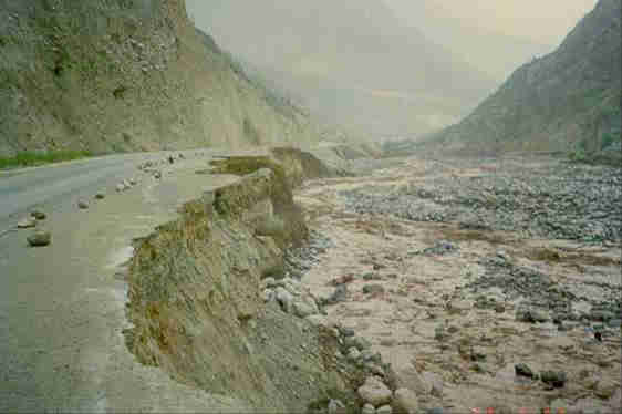 | De weg spoelde weg in Peru in een dorre zone, tijdens hevige regenval tijdens de El Niño van de winter van 1997-1998. De episode die twintig jaar later plaatsvond, veroorzaakte minstens 113 doden en verwoestte ongeveer 40.000 huizen. |