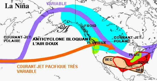 | Effect van El Niño en La Niña in de noordelijke Stille Oceaan en Noord-Amerika. |