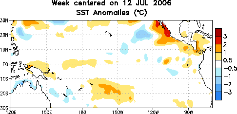 2: Voorbeeld van het in kaart brengen van opwarmingsafwijkingen van de zeeoppervlaktetemperatuur (SST, hier in 2006) met een