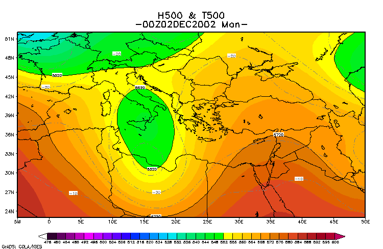 | Een DANA gescheiden van de hoofdstroom boven Italië. |