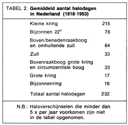 In ons land is gemiddeld om de andere dag wel een kleine kring of gedeelte daarvan waar te nemen. Andere halo's komen minder vaak voor, sommige zijn zeer zeldzaam. Halo's komen slechts voor in een beperkt aantal wolkentypen. Deze .hebben met elkaar gemeen dat ze uitsluitend bestaan uit ijs. Bij de verklaring van de haloverschijnselen speelt dat een belangrijke rol. Voor veel halo's heeft men zo'n verklaring al kunnen