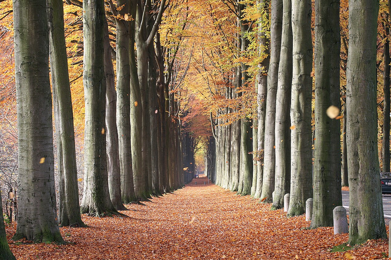 | Beukenlaan op de Drève van Domaine de Mariemont in de herfst. |  |  |