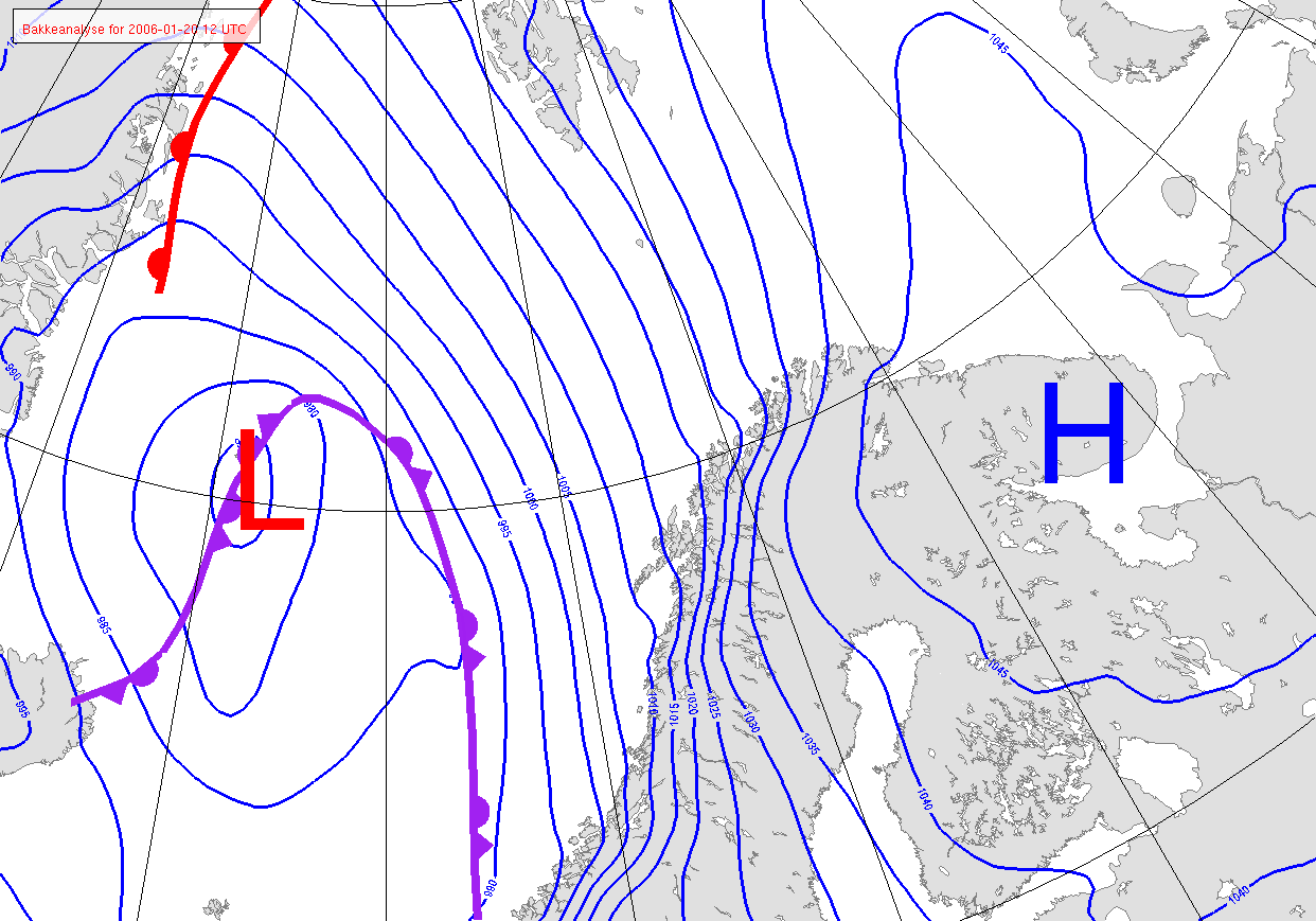 | boven Scandinaviƫ, ten noorden van Nederland, zal er in Nederland een oostelijke wind waaien. Deze voert in de winter koude lucht aan uit het oosten. In de zomer leidt zo'n noordelijk gelegen hogedrukgebied tot een periode van warme, droge oostenwind. |