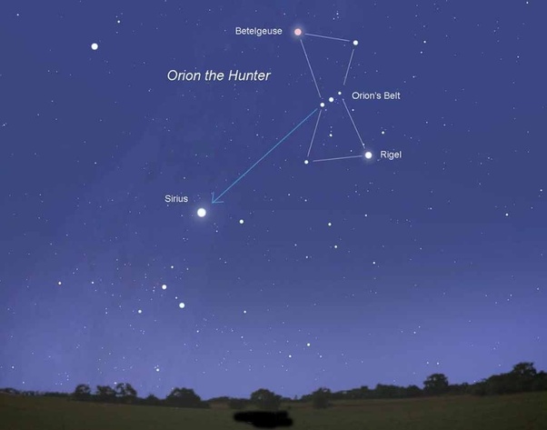 | Naast het volgen van Orion naar de nachtelijke hemel, kan de Dog Star Sirius gemakkelijk in de hemel worden gelokaliseerd door de lijn te volgen die wordt gecreëerd door het prominente asterisme Orion's Belt. |