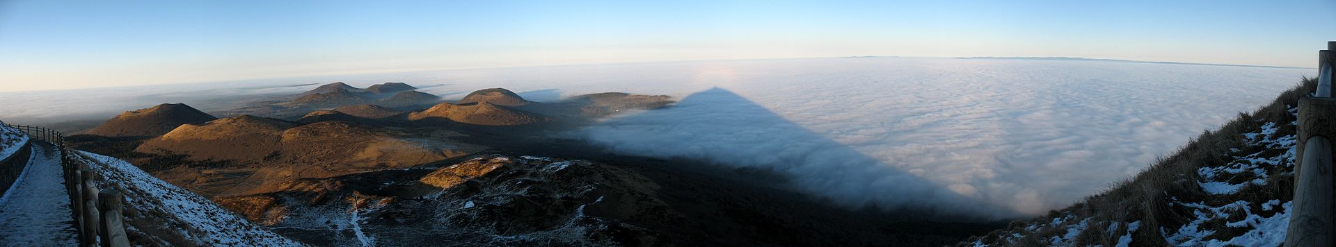 | Wolken gevangen onder een inversielaag, in Puy-de-Dôme |