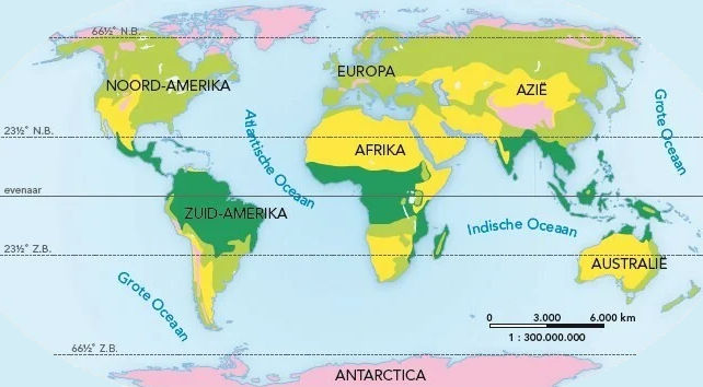 | We vinden dezelfde klimaatgordels terug op beide halfronden. Ze hebben ook dezelfde breedteligging. We vinden de koude klimaten terug tussen de 90° en de 60°. De gematigde klimaten tussen de 60° en de 30° en de warme klimaten tussen de 30° en de 0°. |
