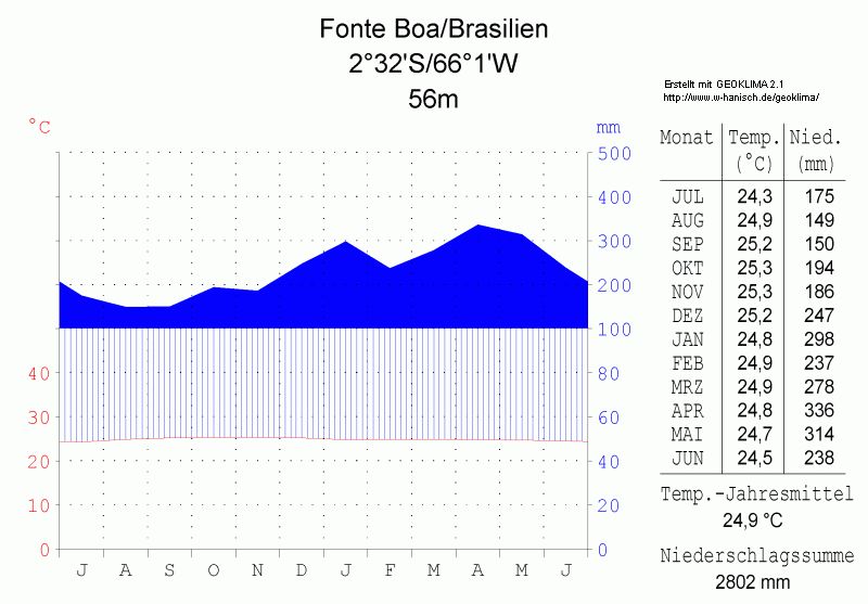 | De twee-op-één-standaard die in dit diagram wordt gebruikt, is omdat deze is ontwikkeld in een mediterrane omgeving en droogte voor planten in deze omgeving overeenkomt met een verhouding tussen het aantal droge en natte maanden van meer dan 1 in het diagram. Het vergelijkt daarom veel klimaten op de middelste breedtegraad. Het is minder nuttig in tropische gebieden waar de regenval tamelijk constant is en altijd boven de temperatuur ligt, evenals in arctische/antarctische klimaten waar de regenval altijd onder de temperatuurcurve ligt en meestal in vaste vorm is. |