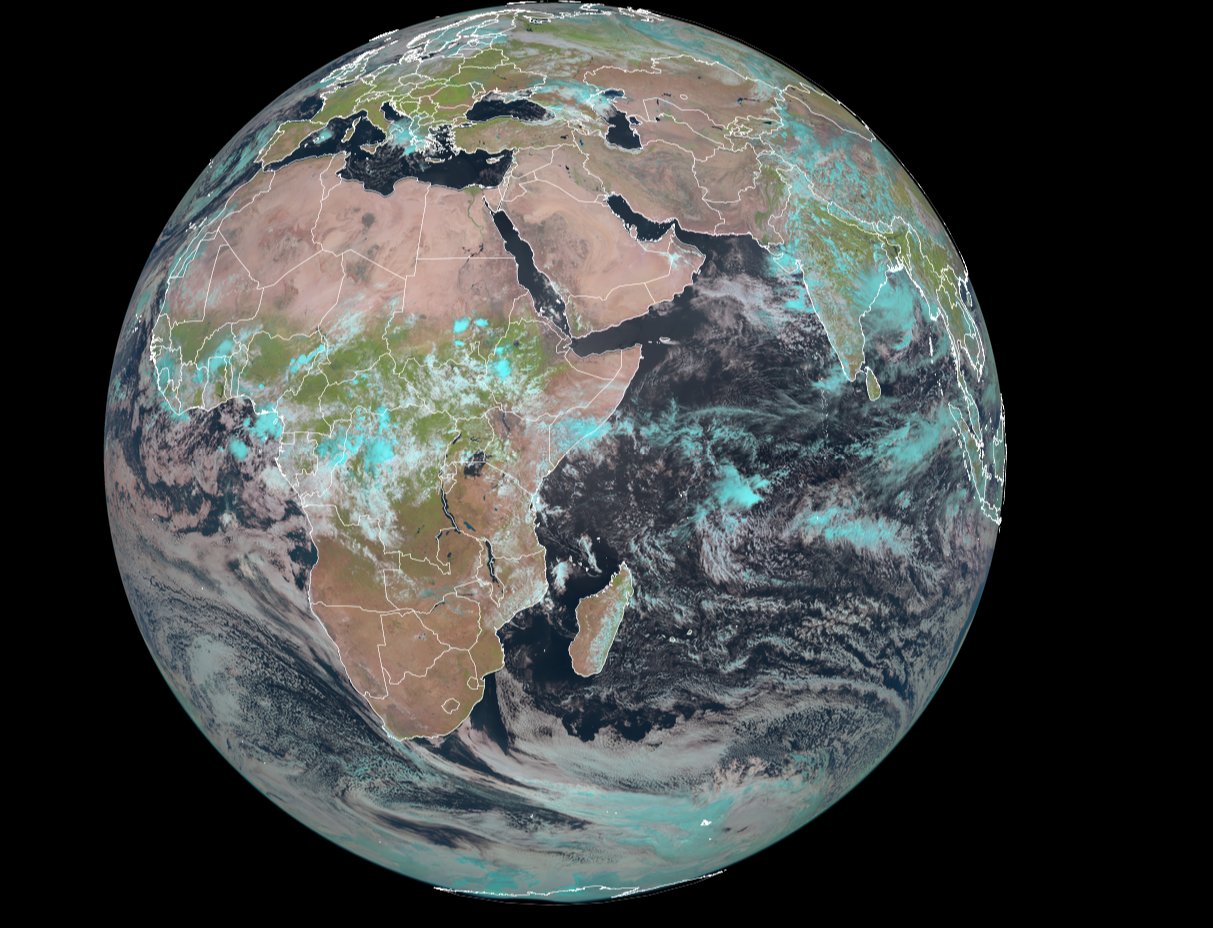 is optimaal voor weerobservatie boven Afrika, de oostelijke Atlantische Oceaan en Zuid-Europa. |