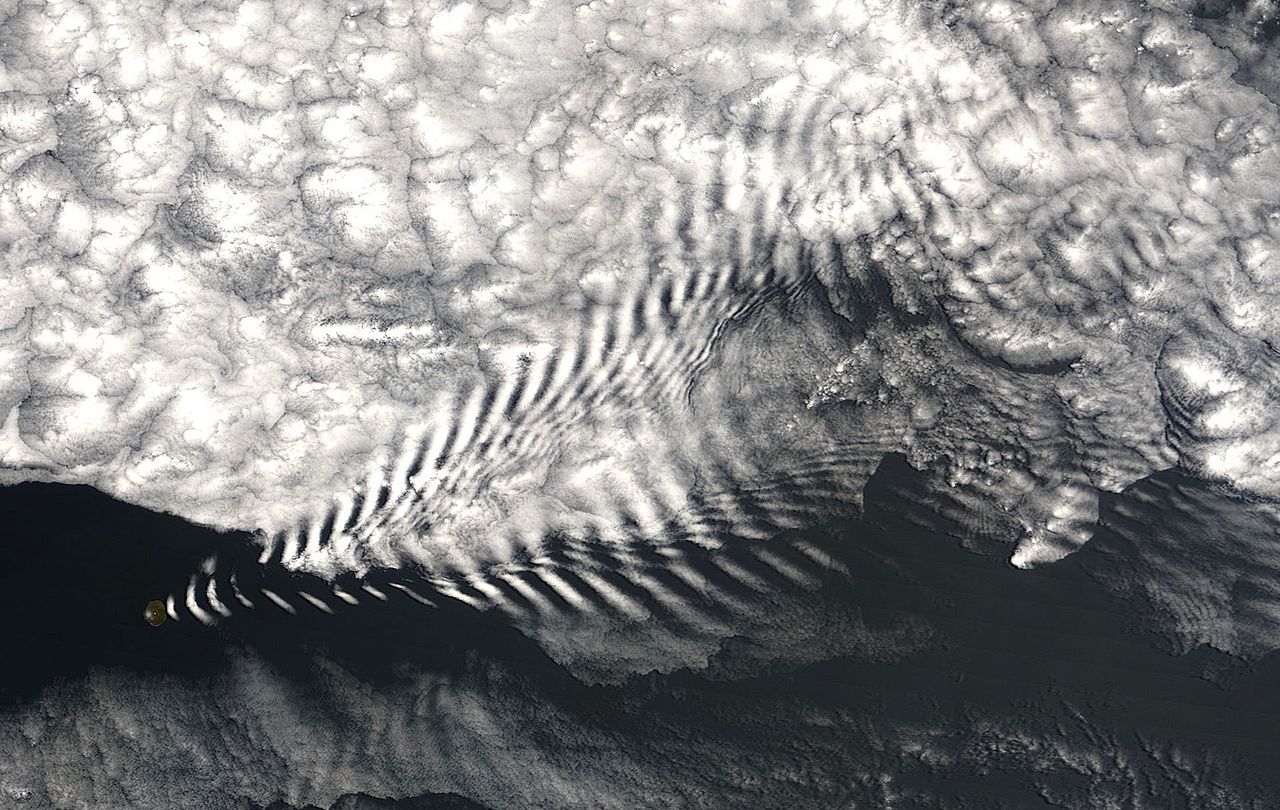 | 1: Parallelle lijnen volgen de top van een orografische golf in het zuiden van Algerije |