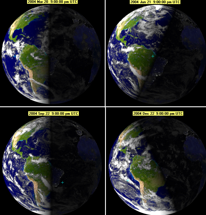 | Stand van de aarde aan het begin van de astronomische seizoenen. |