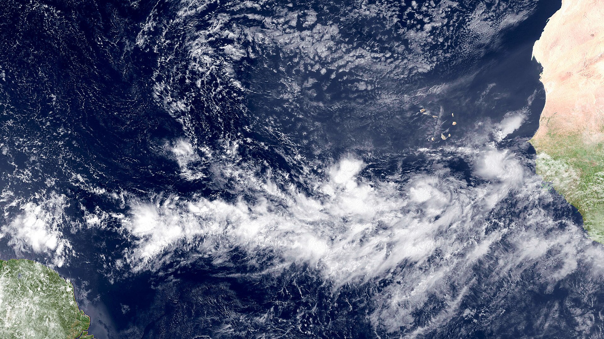 | 2: Satellietfoto van de regengordel tussen Amerika en Afrika tijdens de noordelijke zomer |