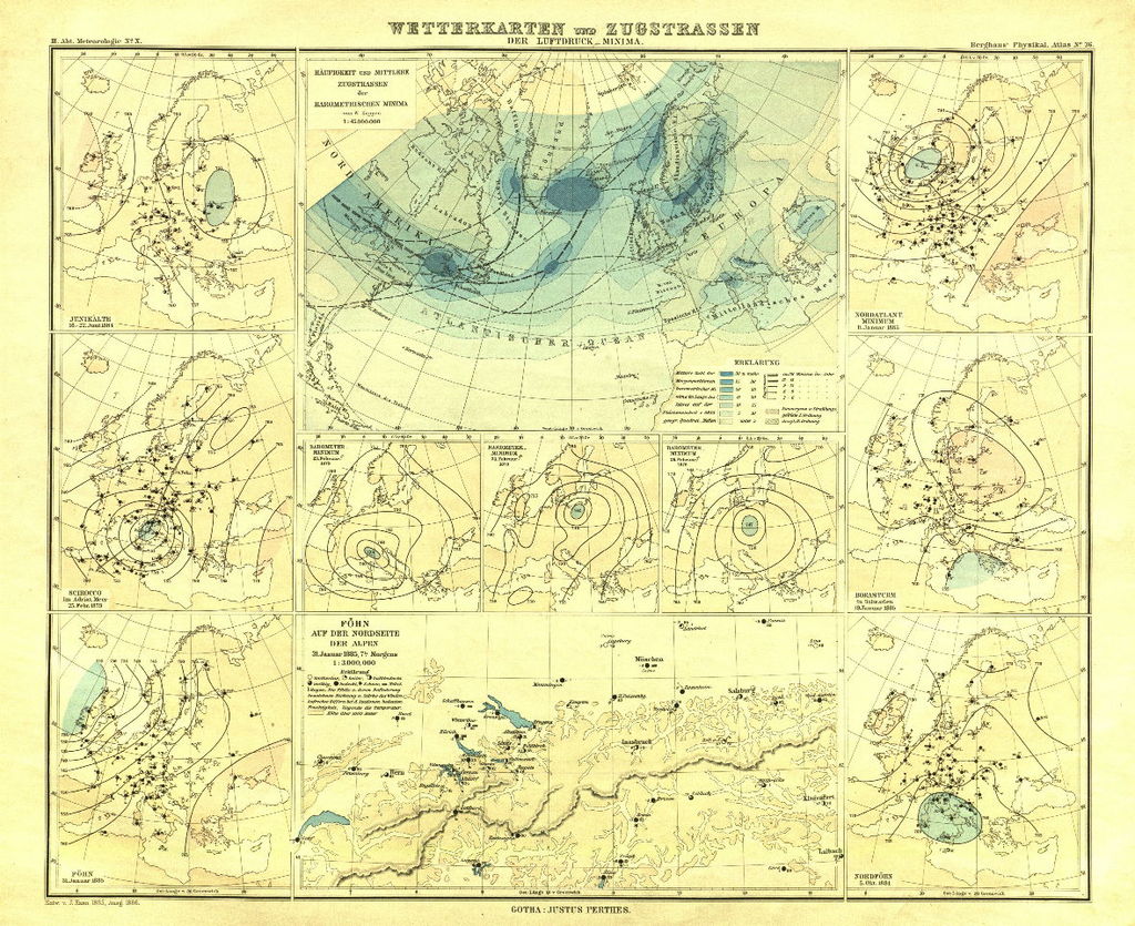 Vervolgens suggereerden meteorologische onderzoekers meer fysieke verklaringen met betrekking tot vloeistofmechanica. Ten slotte heeft de ontwikkeling van computers sinds de jaren vijftig het mogelijk gemaakt wiskundige oplossingen te berekenen voor de vergelijkingen van numerieke weersvoorspellingen. Dankzij supercomputers is het nu mogelijk om voor steeds langere tijd ruwe weerkaarten, vergelijkbaar met analysekaarten,