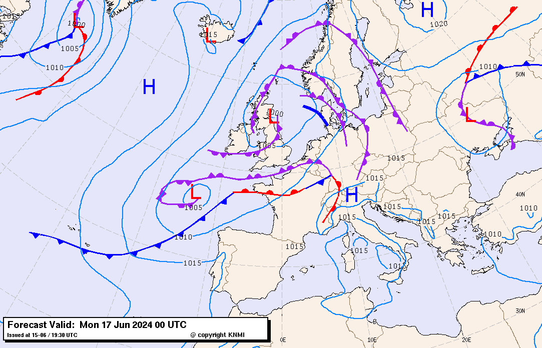 | Oppervlakteweerkaart van Europa voor 17 juni 2024 |