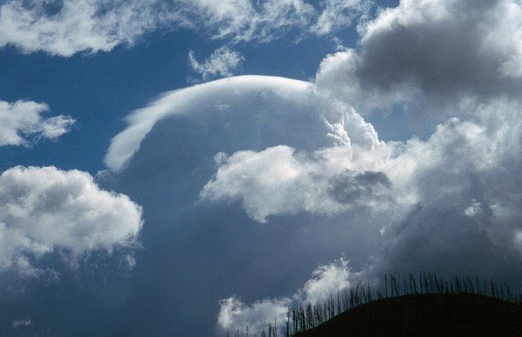 Cumulus congestus pileus, Cumulus humilis, Cumulus fractus (Cu con pil, Cu hum, Cu fra) Locatie: Yellowstone National Park (Wyoming, VS) - © Copyright: Bernhard Mühr |